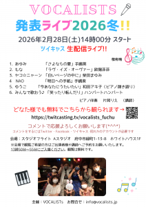 VOCALISTs発表ライブ2026冬開催のお知らせ♪